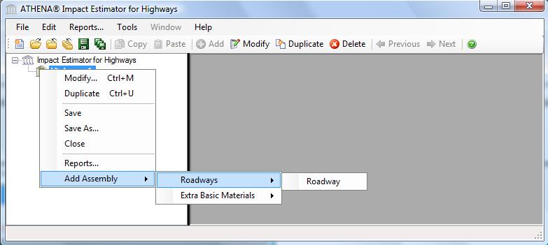 This section describes how the application works from a user’s perspective, with illustrations of some of the screens, dialog boxes and tool bars as well as a discussion of some other application features. If you haven’t already, it is advised that all new users of the application spend a few minutes orienting themselves by quickly running through the tutorial (click here to access the tutorial). You can choose to either just read the following "Using the Athena Pavement LCA" passages or follow along by actually duplicating some of the example input screens presented – as we all learn more quickly by doing, we highly recommend the latter.